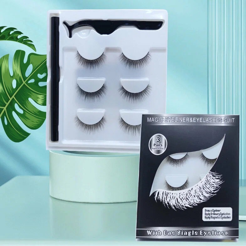 Ресницы многоразовые с пододкой магнитной фломастером 3 пары