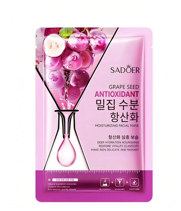 Описание Тканевая маска для лица Sadoer с экстрактом винограда 25 мл